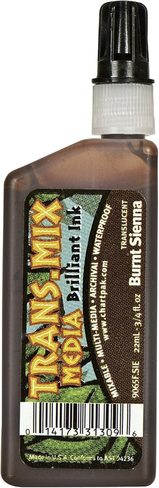 This professional grade drawing ink is available in .75 oz squeezable bottle with spout under the Trans-mix Media name as well as in the larger 1 & 8 oz bottle sizes with a flip up spout under the Drawing Ink name. All bottle designs allow for easy measuring and dispensing of ink for mixing ratios and for filling technical and drawing pens.