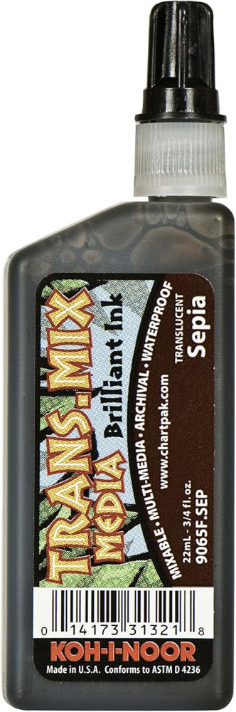 Koh-I-Noor 9065F Trans-Mix Media Drawing Ink, Pigmented Acrylic Based Professional Grade, .75 oz